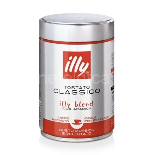 Káva obsahuje maximálně 1,5 % kofeinu, je balená v praktické plechovce, která obsahuje 250 gramů kávy. Espresso illy má pěnu oříškově až tmavě hnědou, která zůstává ještě dlouho po zamíchání.
